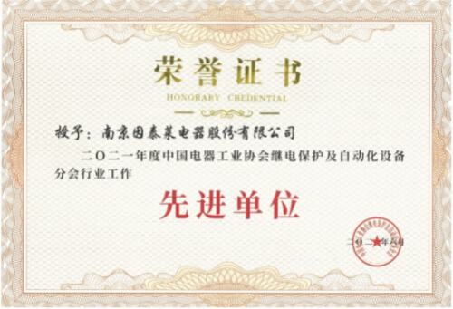 南京因泰萊獲評中國電器工業(yè)協(xié)會繼電保護及自動化設(shè)備分會工作先進單位